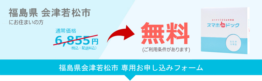【ご利用条件】 ■受付期間 令和7年12月1日~令和8年2月28日次の全ての条件を満たす方が対象です。 1.令和8年3月31日時点で、満37歳〜満39歳の方(昭和61年4月1日〜平成1年3月31日生まれの方) 2.会津若松市国民健康保険に加入されている方■ご利用料金 無料 ※先着50名様ご利用条件に該当する方は上記受付期間1回に限り、一般販売価格:「キット代金6,578円(税込)+別途送料」のところ、無料で検査をお受けいただけます。※当サービスは、ご本人様以外はお申し込みできません。※上記条件外の方が、偽った情報にてお申し込みされた場合は、費用全額をご請求させていただく場合がございます。※お申し込み後は検査キットが届きますので、必ず検査を実施してください。実施いただけない場合、費用全額をご請求させていただく場合がございます。※お申し込み後のキャンセルはできません。